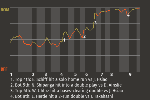 Rome used the clutch hitting of Weiner Uhlirz to capture the win. The third baseman drilled a bases-clearing double in the top of the sixth inning to give the Generals the lead, 5-1. For the game, Uhlirz had 2 singles and 1 double in 4 at-bats.