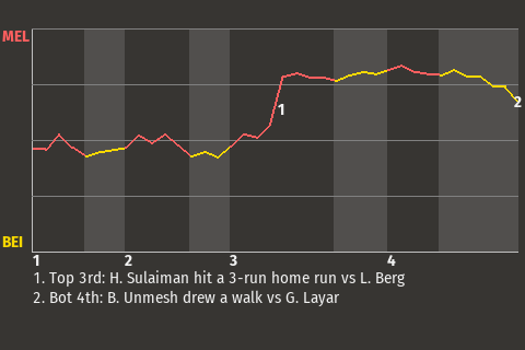 Beijing took a 5-2 lead on Salla Usaama's 3rd home run of the season. The 2-run home run, which Usaama hit in the top of the ninth, left Tokyo pitcher Pedro Peña visibly frustrated.