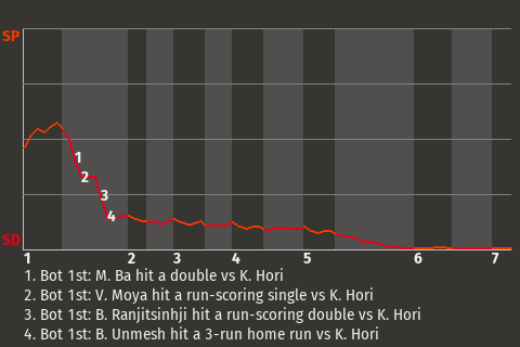 2 (8, 2nd Inning off A. Vásquez, 0 on, 0 outs; 6th Inning off A. Vásquez, 1 on, 1 out)